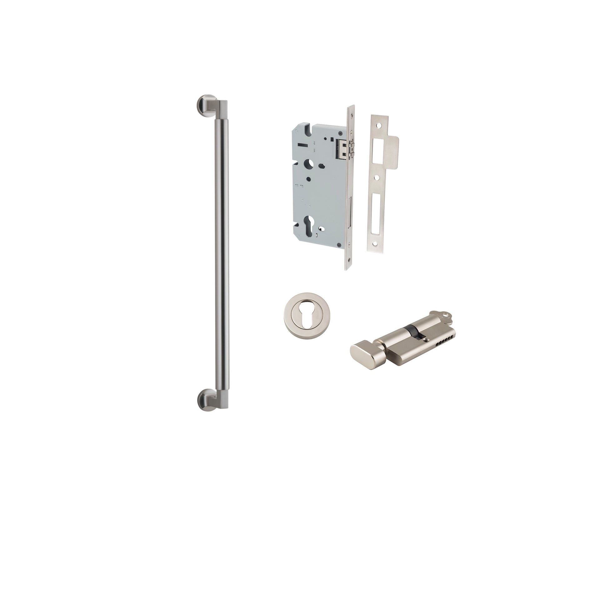 Berlin Pull Handle Satin Nickel 450mm Entrance Kit - Key/Thumb Turn